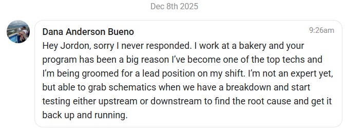 I've spent years building practical training for maintenance and automation technicians. What started as corporate classroom training — at $1,249 per seat — has been through over 400 technicians at companies including Walmart, Amazon, Toyota, Smithfield, and Nestlé.